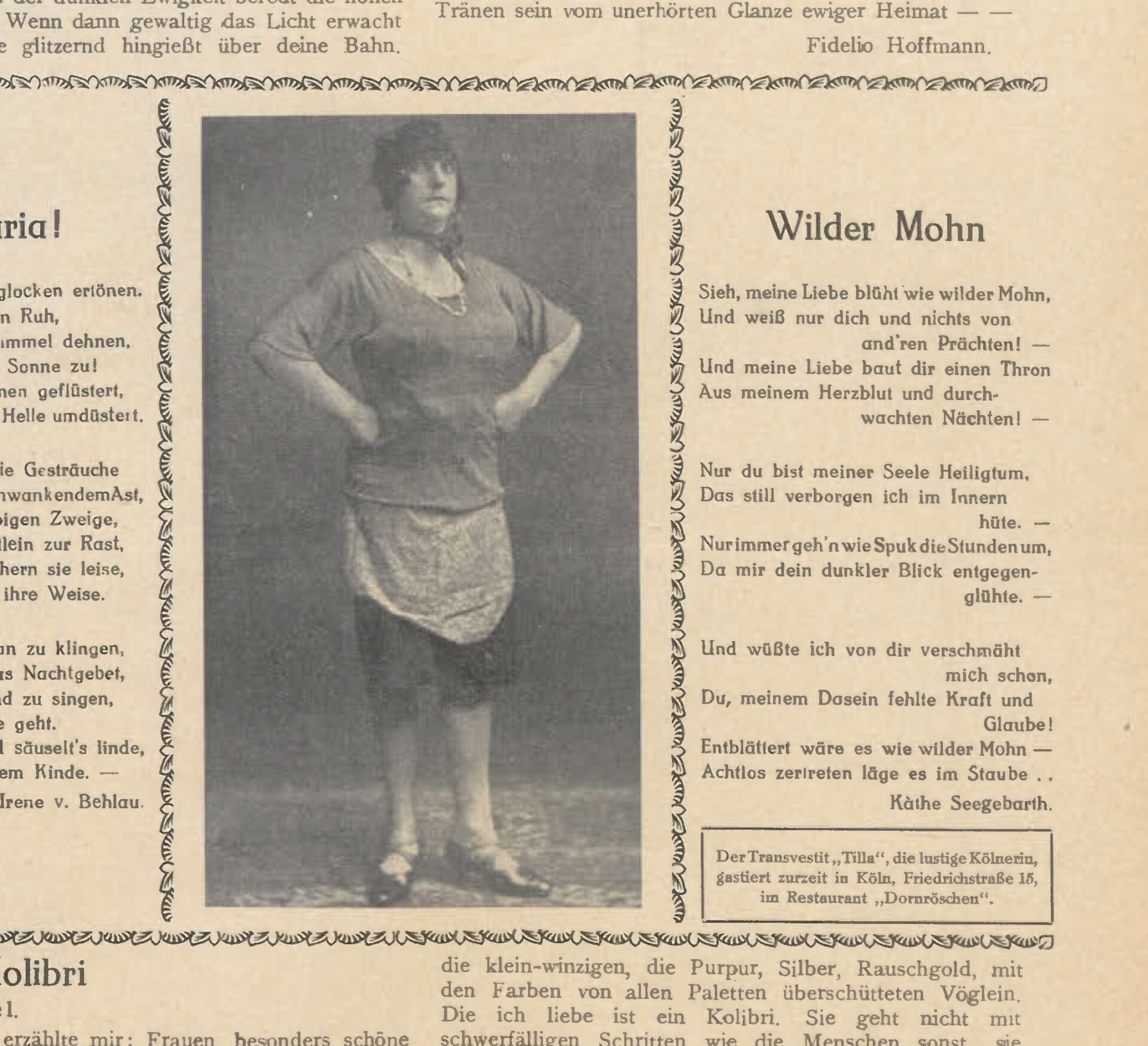 1. Raumansicht © NS-DOK; 2. Aktendeckel H.B. © LAV NRW R, BR 2034, VH II 83; 3. Mahnmal für die schwulen und lesbischen Opfer des Nationalsozialismus am Kölner Rheinufer © CC-BY-SA KölnTourismus, Foto: Christoph Seelbach; 4. Postkarte des Lokals »Nettesheim« © Privatbesitz; 5. Anzeige des Dornröschens, 1920er Jahre, in: Die Freundschaft; 6. Die Freundin, Nr. 09, 1928, S. 5; 7. Zeichnung des Dornröschens von Martin Augenstein nach den Angaben von Willi Zehnpfennig © Centrum Schwule Geschichte e.V.