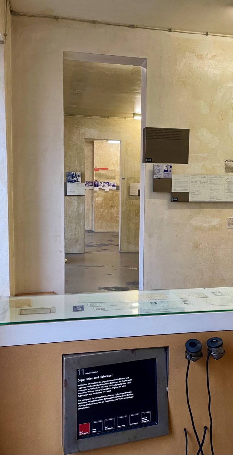 In den letzten drei Räumen, durch die Du gegangen bist, erzählt die Ausstellung, wie Jüdinnen und Juden in Köln schrittweise entrechtet, verfolgt und ermordet wurden. Nicht deutlich wird jedoch, welche aktive Rolle die Gestapo hierbei spielte und welche Bedeutung dieses Haus im Mordgeschehen hatte.