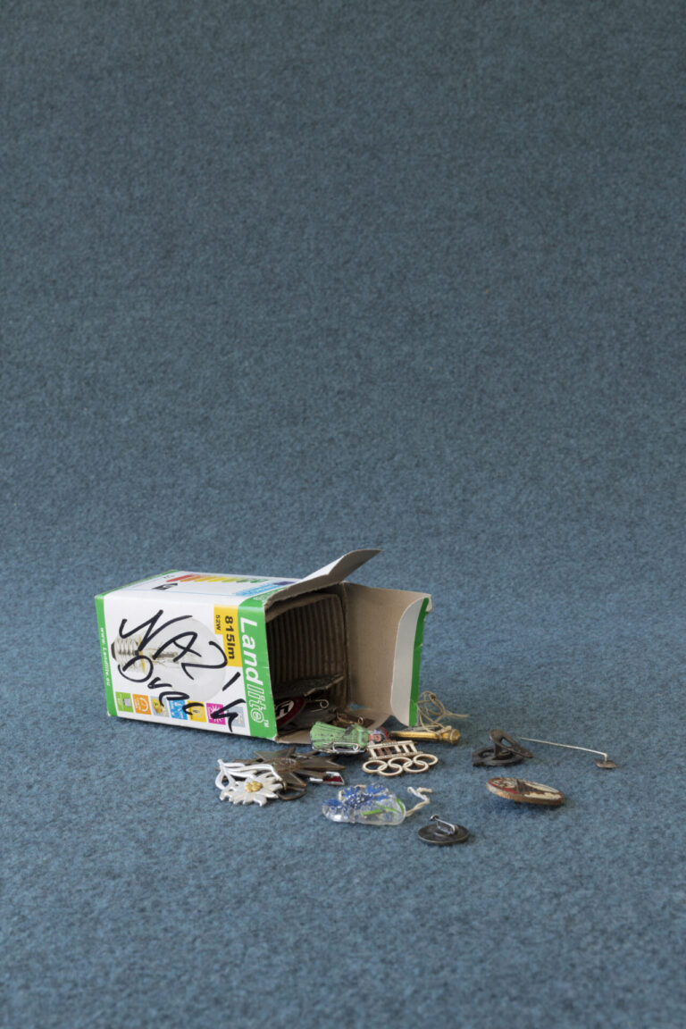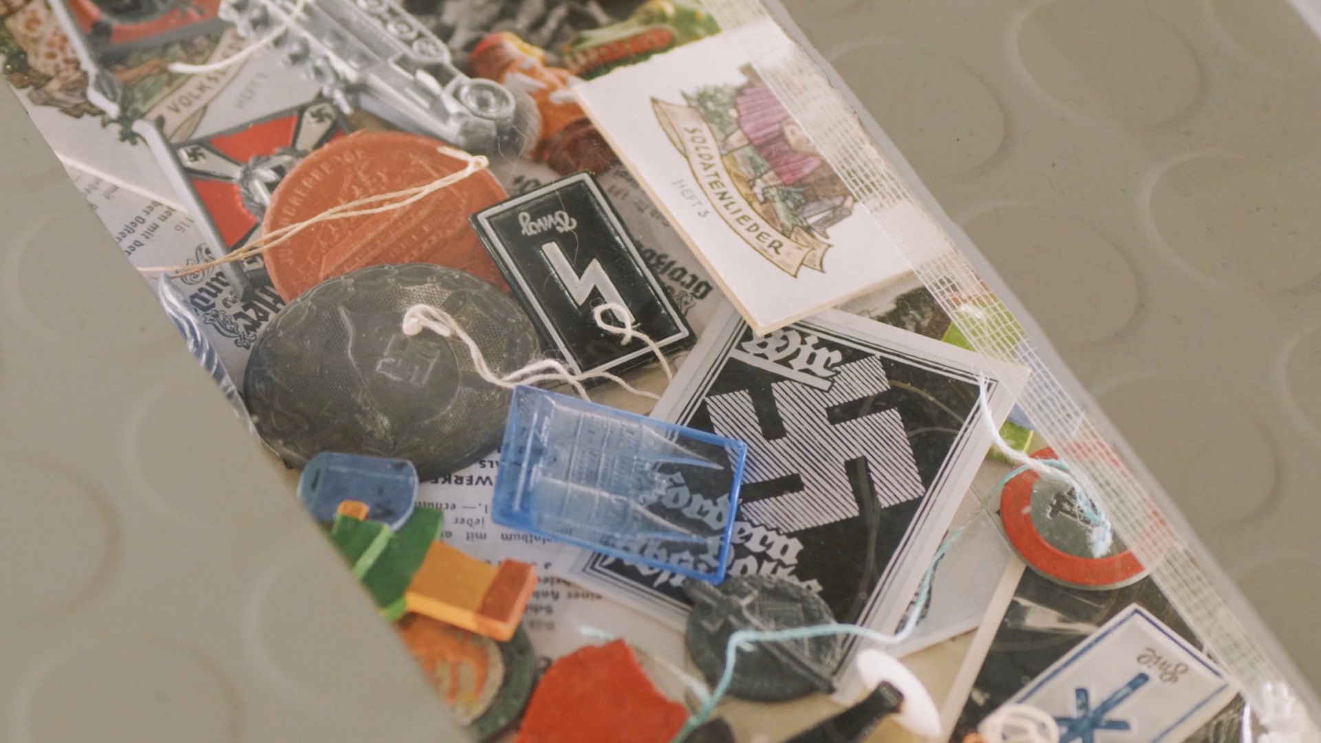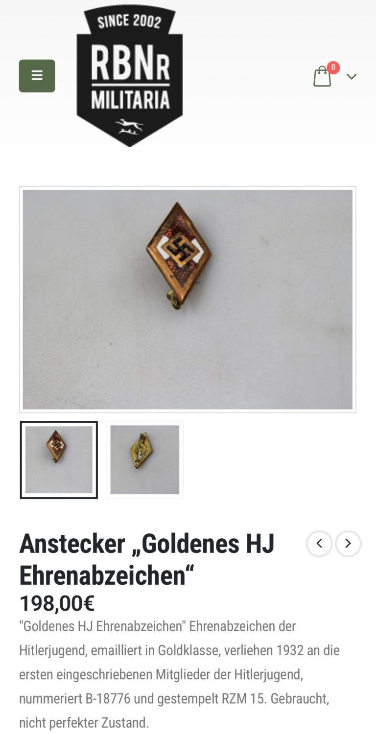 1. Ehrenabzeichen der HJ © NS-DOK; 2. Sohn der Familie Fahlbusch © NS-DOK; 3. Abzeichen in der Sammlung des NS-DOK © privat; 4: Verkauf eines HJ-Ansteckers © RBNr Militaria; 5: Schachtel mit NS-Abzeichen © Margus Wörgötter; 6: Ausstellungsansicht Haus der Geschichte Österreichs © Lorenz Paulus/hdgö, CC-BY-SA 4.0 4.