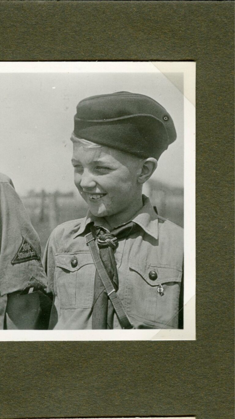 Ein Sohn der Familie Fahlbusch mit einem HJ-Abzeichen an der Uniform, 1934
